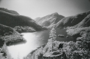 gorgeous pigmented ink prints from infrared film are collaged with recylced