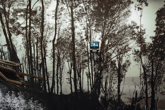 Nichole DeMent has installed an 8' x 20' inkjet print of a local forest with a video of