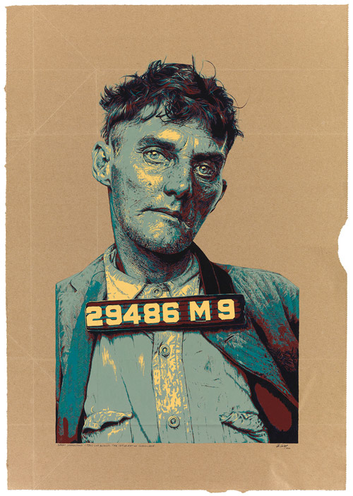Great Depression - 1930's Los Angeles. Case Information Unavailable. Acrylic on paper bag, 18"w x 25.625"h