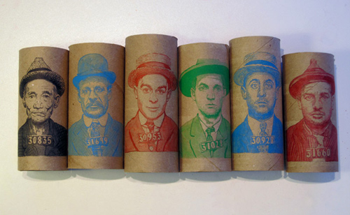 Chris Crites presents Yard Waste and Toilet Paper from Oct. 7 - Oct.30, 2010. A sort of an experimental show for Crites, he visits ideas he has had for years but had not yet executed. Large scale works on yard waste bags and mug shot portraits on 72 cardboard toilet paper tubes make up the show and his first installation piece.